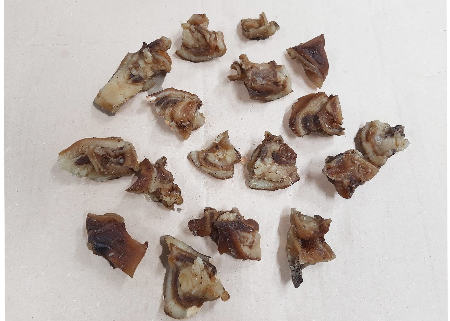 - Det är den mest sega delen av ett grisöra, torkad för att bli ett hundtugg.