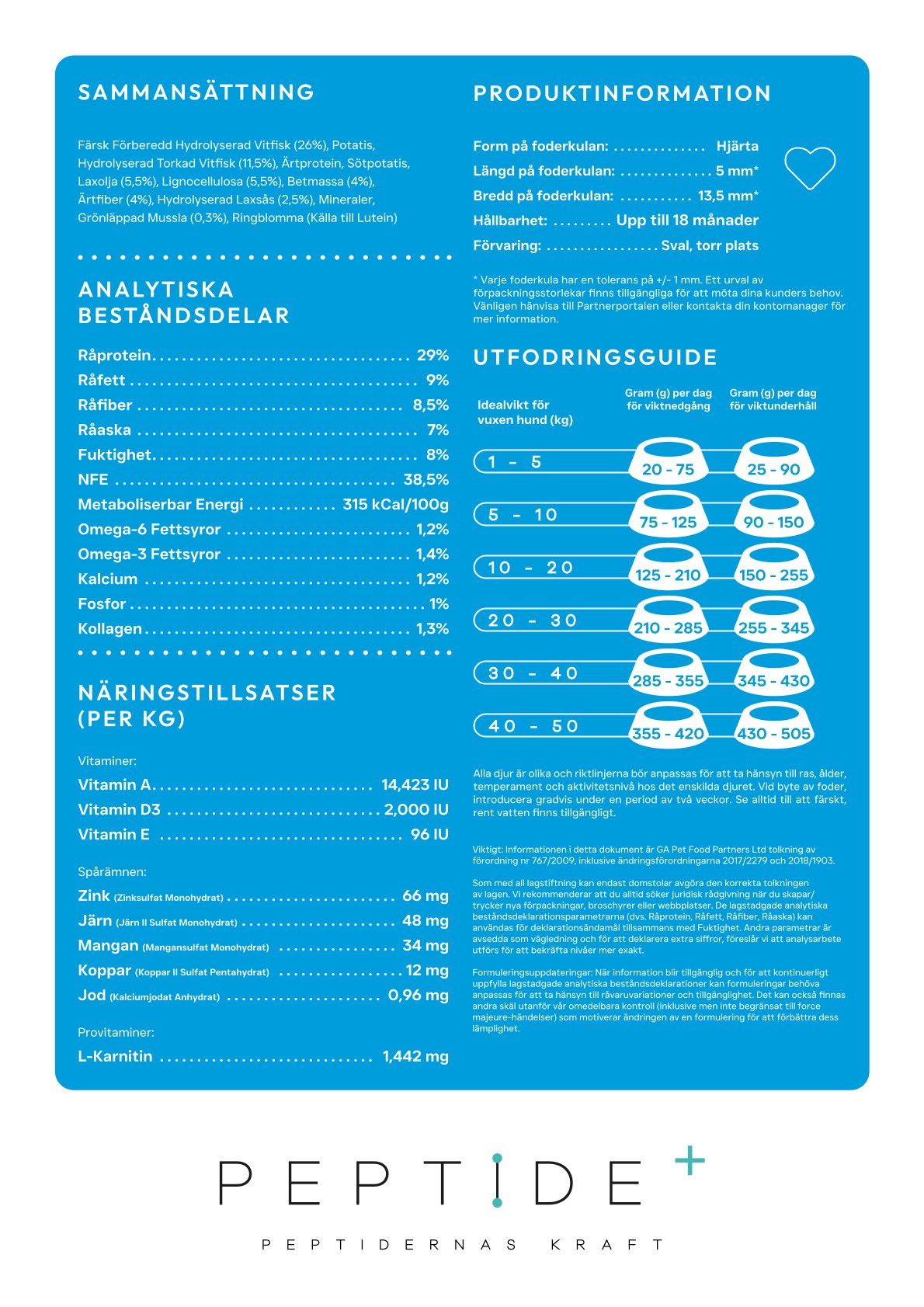 Hydrolyserad Torkad Vitfisk (11,5%), Ärtprotein, Sötpotatis,