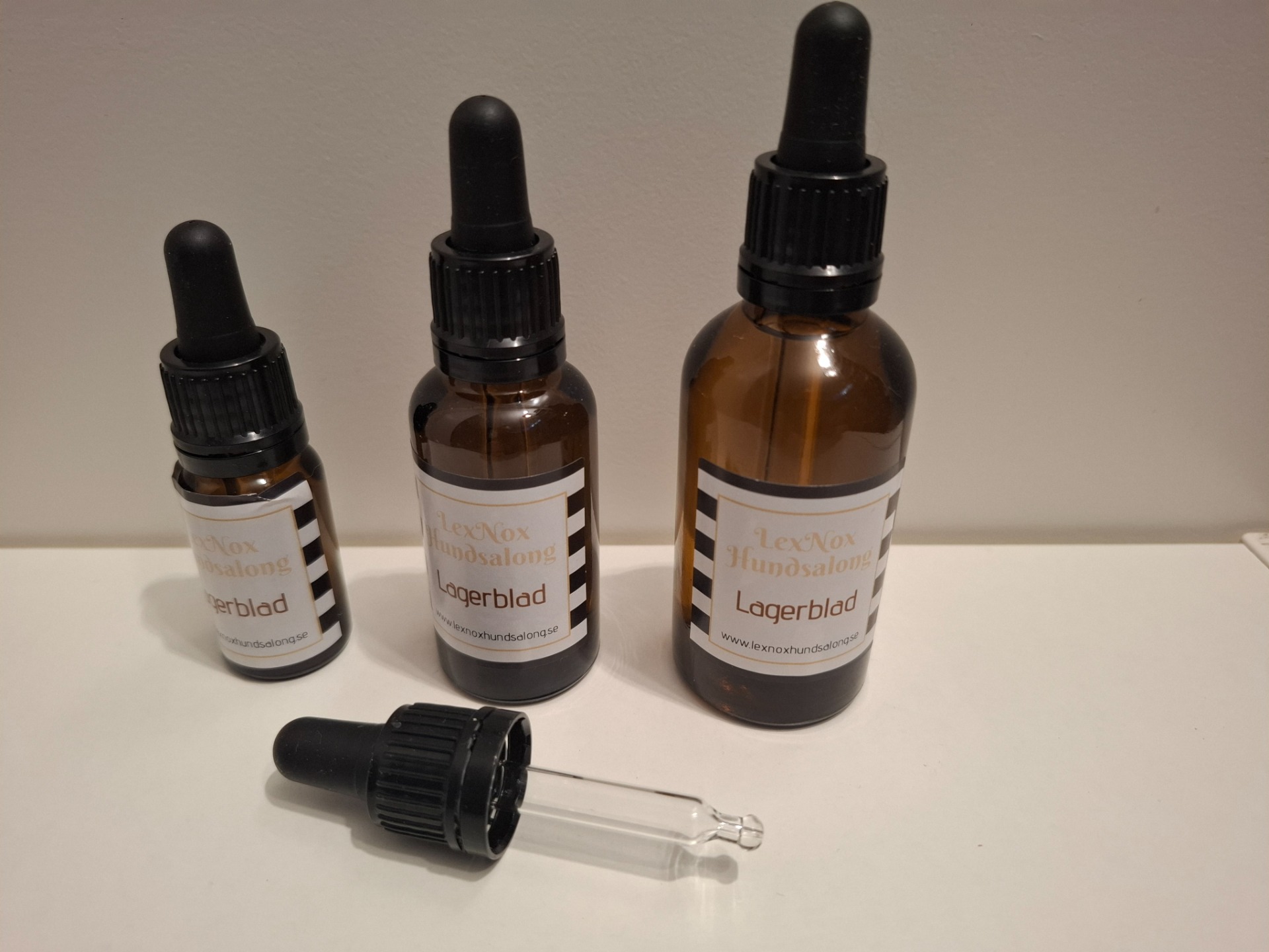 Doftämne/Hydrolat i brun flaska med glaspipett för Nose Work.