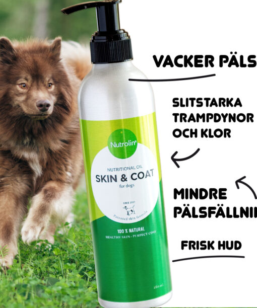Visste du att endast fettsyror från växtoljor, särskilt omega-6 linolsyra, stärker hudens naturliga skyddsbarriär? Den patenterade Nutrolin® SKIN & COAT är rik på dessa essentiella fettsyror som vårdar hud och päls.